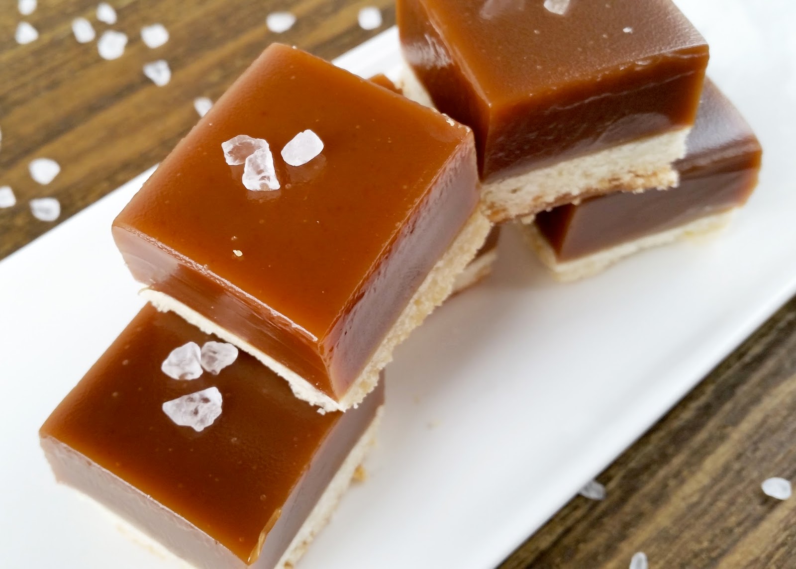 To sum things up, pie crust + apple cider caramel + sea salt = amazingness. I rolled out my pie crust and fit it into the bottom of a square cake pan, and baked it until beautifully golden brown. Topped with a chewy caramel and flaked with crunchy sea salt, these squares are satisfying and decadent, any time of year.